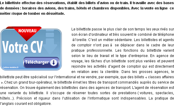 Modèle de lettre de motivation - Billettiste